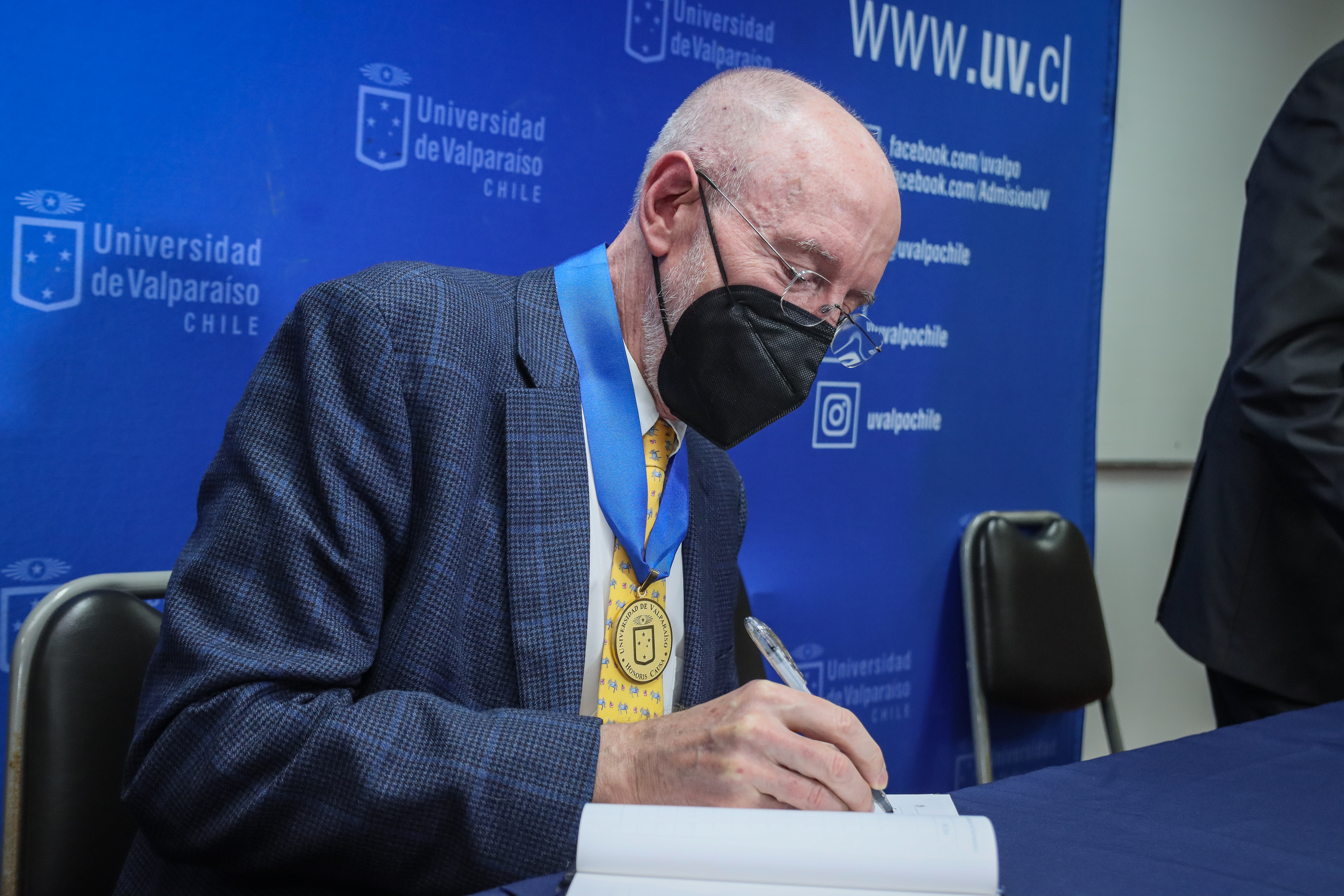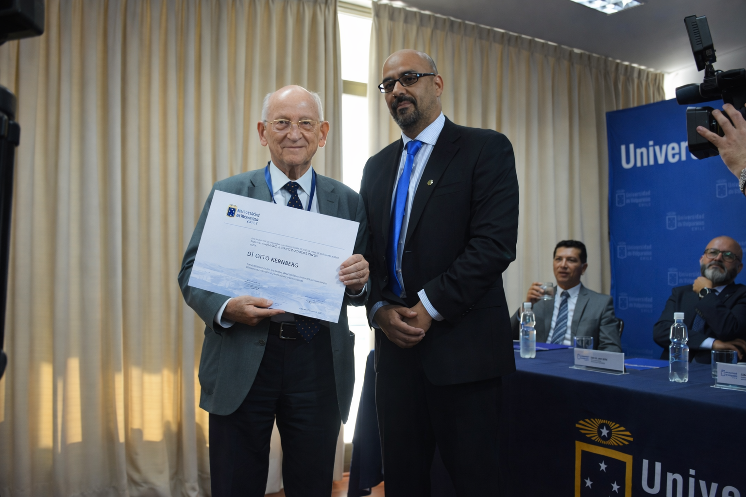 Nombramiento Profesor Honoris Causa Universidad de Valparaíso para el Dr. Frank Yeomans, junto al rector Oswaldo Corrales